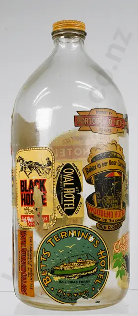 BEER FLAGON WITH STICKERS