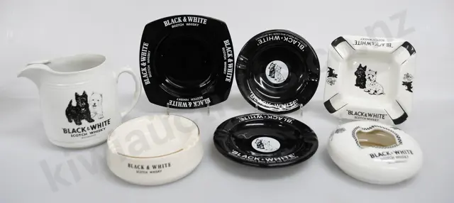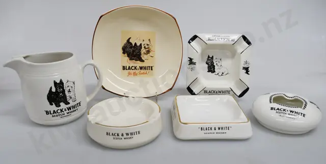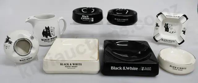 BLACK & WHITE WHISKY ADVERTISING JUG & ASHTRAYS