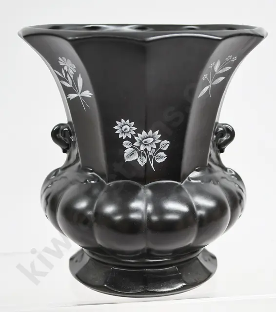 CROWN LYNN FLAT TOP BLACK URN VASE NUMBER 603