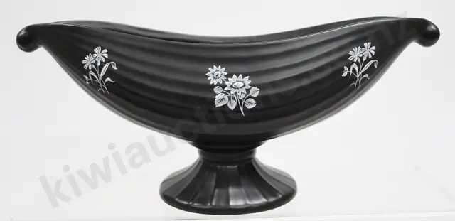 CROWN LYNN BLACK BAMBOO BOAT VASE NUMBER 615
