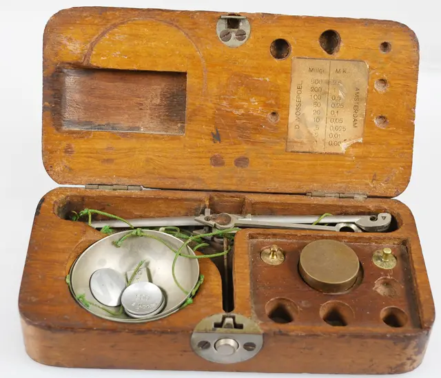 GOLD SCALES IN WOODEN BOX