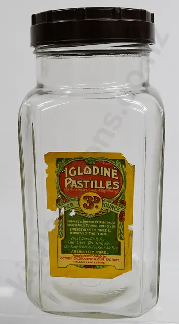 LOLLY JAR WITH IGLODINE PASTILLES LABEL
