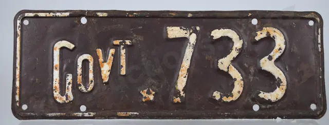 NZ GOVERNMENT NUMBER PLATE GOVT-733, 1933-1934