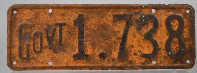 NZ GOVERNMENT NUMBER PLATE GOVT1-738, 1939-1940