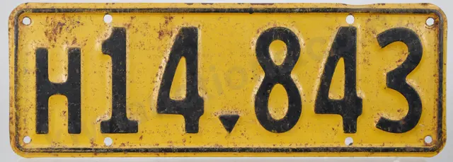NZ HEAVY VEHICLE NUMBER PLATE, H14-843, 1936-1937