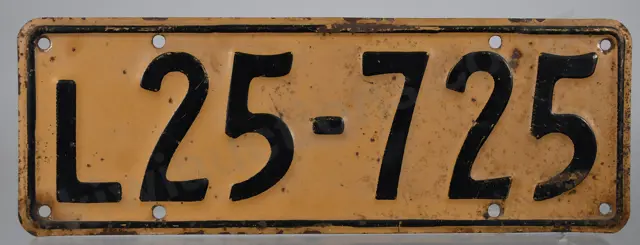 NZ LIGHT VEHICLE NUMBER PLATE, L25-725, 1946-1951