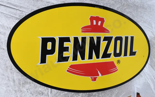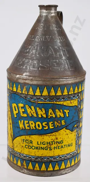 380mm x 255mm painted tin sign, Blue on White, Shell Blue Pennant Kerosine Sold Here, light scratches, paint loss to outer edges, mainly around fixing holes, minor marks, Very Good 8.5/10