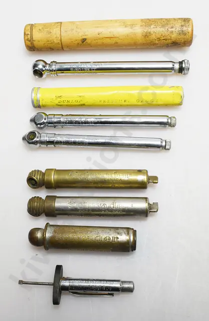Longest item 230mm, items include Christchurch Battery Co Ltd letter opener/knife plus ERG Batteries, bakelite paper knife plus Goodrich Tires 6" wooden ruler Reidrubber ballpoint pen plus Reidrubber used pencil plus Reidrubber Tyres tread gauge India Super The Finest Tyres Made, surface rust Barnett Glass Cycle Tyres, dull, surface rust plus Caltex Boron promotional spinning top Motor Specialist Auckland, India Super Tyres, compass in the shape of a tyre plus Dominion Tyres Screw Driver plus Goodyear Motor Tyre Service Club/Prospect Hill Road Camberwell tag, all items have age related wear, minor marks, Good 7.5/10 (12)