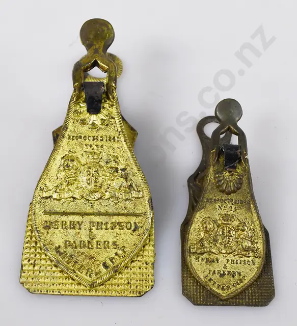 184mm long brass letter paper clip, marked Merry Phipson & Parker's Letter Clip, Regd Oct. 3 1843, No. 24, with a Coat Of Arms Trade Mark, minor marks, wear and discolouration, Very Good 8/10