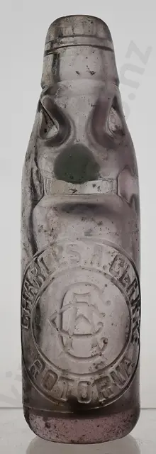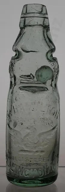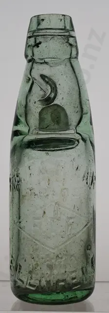 Codd 539, 10oz 4 dimple, Kilner maker, J Frazer Rangiora 3 entwined fish Trade Mark, tiny fleabite nibble to rim edge, small scuff on marble chamber, minor marks, Very Good 8/10